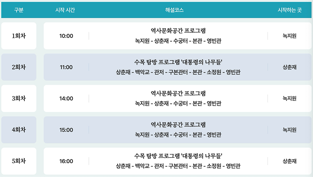 4. 4회차: 오후 3시 시작 – 녹지원(여민1관 앞)에서 출발