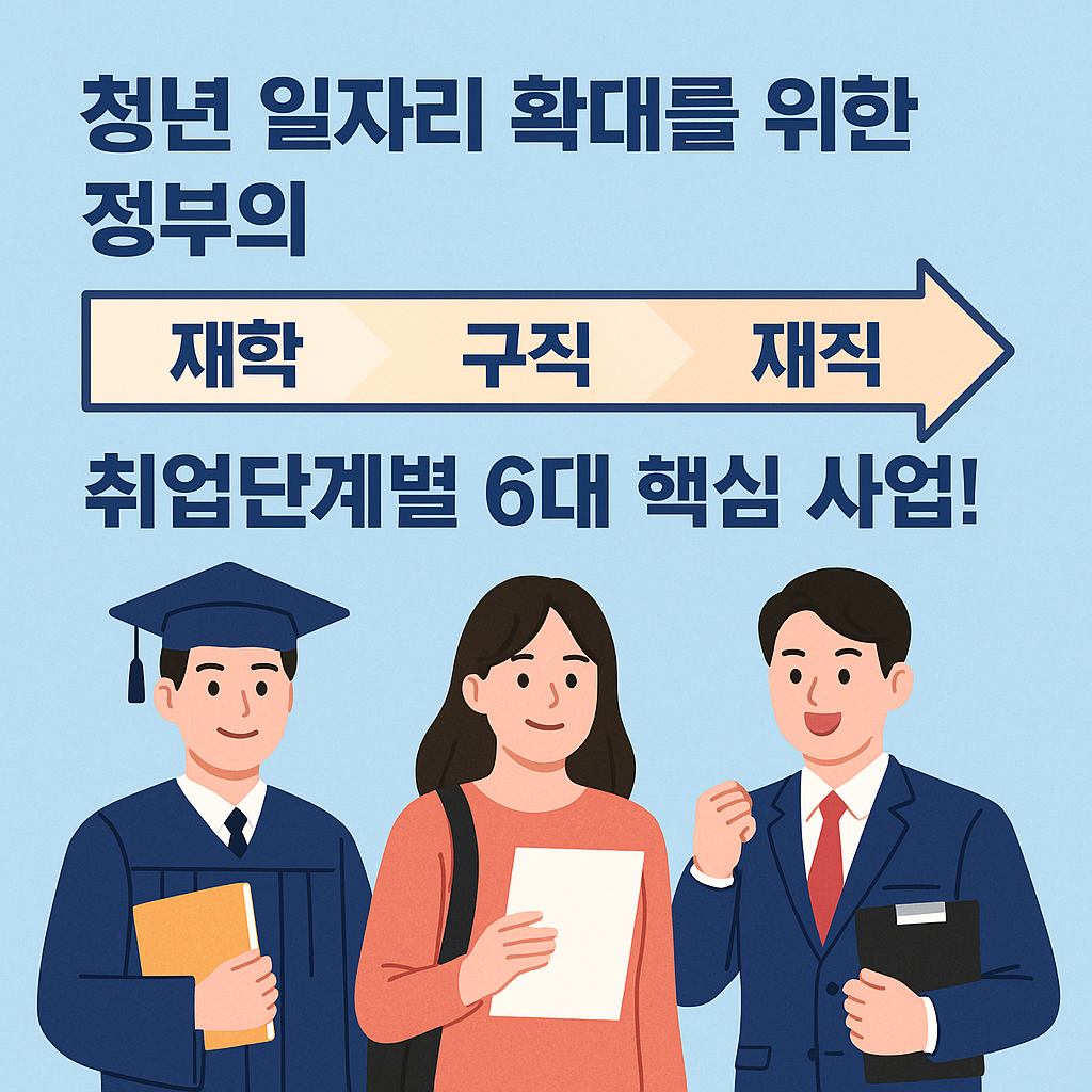 청년 실업 문제는 한국 사회가 오랫동안 안고 있는 주요 과제 중 하나입니다. 대학교를 졸업하고도 안정적인 일자리를 찾기 힘든 현실은 청년들에게 큰 부담이 되고 있으며, 이는 사회 전반에 걸쳐 다양한 파장을 일으키고 있습니다. 이에 정부는 청년들의 취업 전 과정을 촘촘히 지원하기 위해, ‘재학→구직→재직’의 전(全)단계를 아우르는 6대 청년일자리 사업을 선정하고 이를 집중 관리하겠다고 밝혔습니다.
